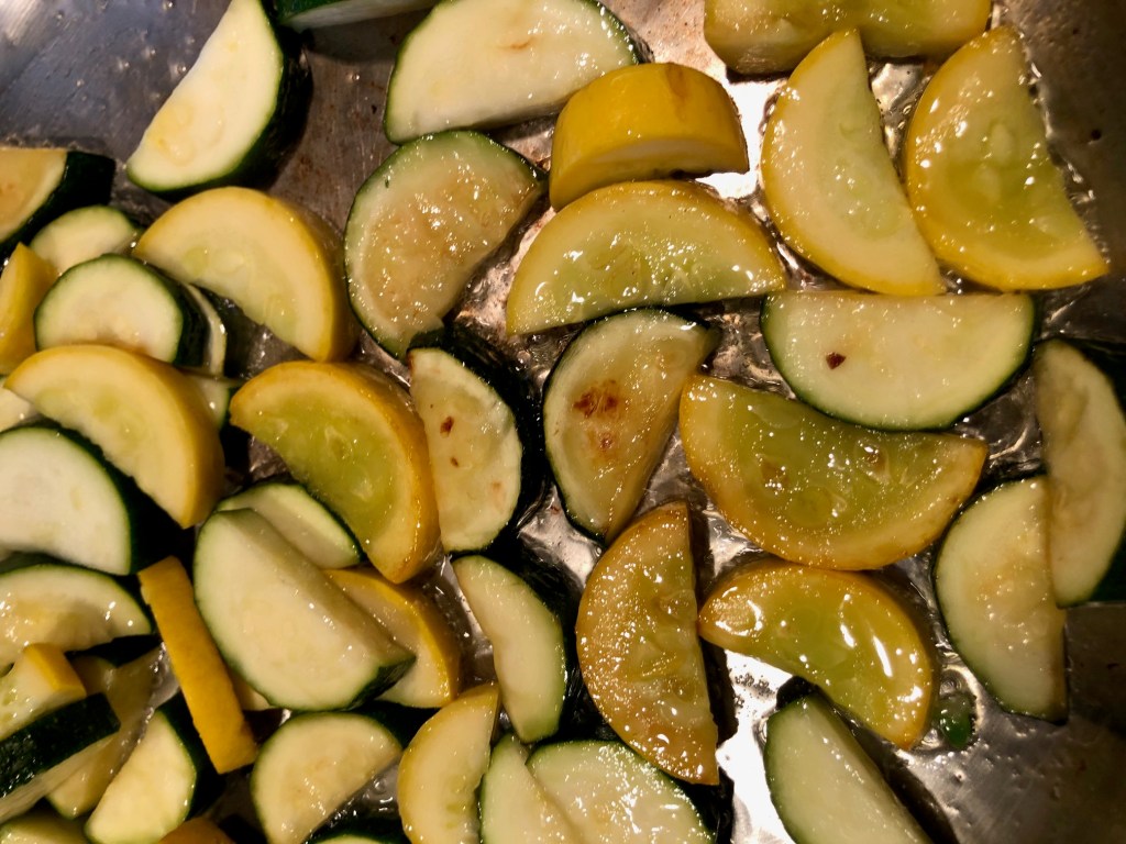 This is how your sautéd squash should look like, notice the “freckle” of browning as we begin to turn the squash over.